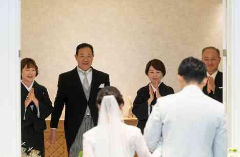 挙式のリハーサルが始まる前に、まずは新郎新婦様と両家親御様でファミリーミートのお時間が。 タキシードとドレスに身を包んだおふたりを見るなり、笑顔の表情を浮かべた両家親御様、結婚式を迎えたおふたりにそれぞれの想いが溢れるあたたかい場面となりました。その後のリハーサルも和やかな雰囲気で進められていらっしゃいました。