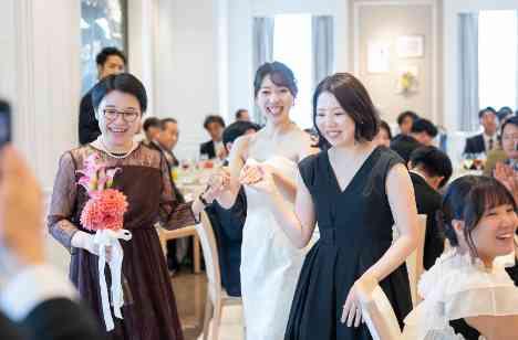 お色直し後は全員参加型のゲームを二つ企画! ひとつめは盛り上がること間違いなしの王道『ドレス色当てクイズ』、ふたつめは職業にちなみ、教育用ゲームアプリを使用したクイズ大会です。どちらも景品を賭けて皆様のボルテージは急上昇。特にクイズ大会はチーム対抗だったこともあり、ゲスト同士がハイタッチで盛り上がる姿も♪まさにおふたりが大切にされていた『ゲストに楽しんでいただくこと』が形になった演出でした!