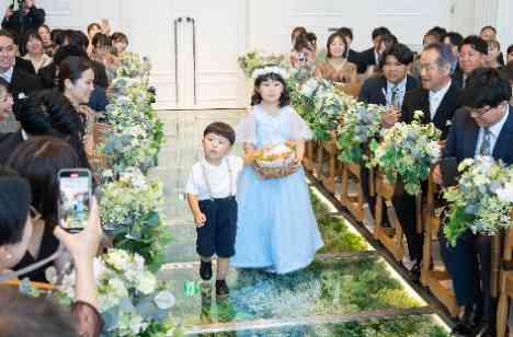 宗教にとらわれず、参列されるゲストの皆様を立会人として結婚を誓う自由度の高い人前式。アットホームな雰囲気になることが特徴でもありますが、おふたりの挙式でより雰囲気をほっこりとさせてくれたのは、リングガール・ボーイの登場でした。 かごに入った結婚指輪を大切そうに運ぶお子様達♡そのしっかりとした足どりに、ゲストの皆様もあたたかい応援の眼差しで見守り、会場内の一体感を感じた瞬間でもありました。