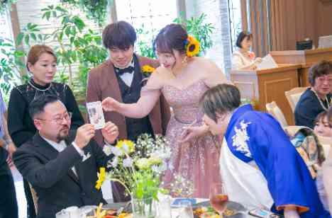 歓談の時間をしっかりととることも大切に考えられ、ご披露宴の後半では新郎新婦様自らゲストテーブルを順番に周りました♪その際にご用意されたのは写真撮影のポーズをくじ引きで決めるポーズカード。ユニークなポーズには笑いが起きたり盛り上がること間違いなしなことはもちろん、後日写真を見返した時にもレパートリー豊かな写真の数々は、きっと忘れることのない大切な思い出になることでしょう…♡