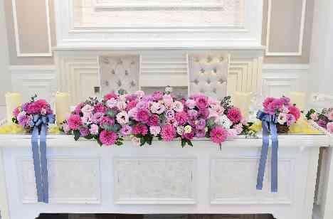 パープルがおしゃれな空間に。 たくさんのお花に囲まれた空間はゲストの皆様の心を鷲掴みに。 キャンドルを使ってより理想のイメージへと創り上げました。 キャンドルの幻想的な空間はゲスト様からも大好評!