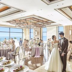 【クチコミランキング\演出・進行部門第1位/】蒼い海を一望する大きな窓やテラスを備え、海辺の開放感にあふれた心地よさが魅力。2つのバンケットで、花嫁&ゲスト人気の高いオリジナル演出体験をご用意♪