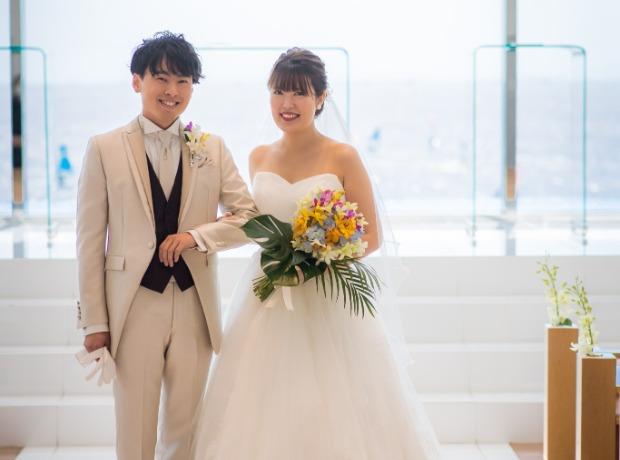 海の近くや、海が見える場所で式を挙げたくてザ・サーフオーシャンテラスに見学した時に挙式会場から海一面見えて素敵すぎてもう、ここしかないと思いました! 披露宴ではプロジェクターやライトを使って本格的に体験でき、自分達が式を挙げているのが想像出来たこともありここで挙げたいという想いが強くなりました!!