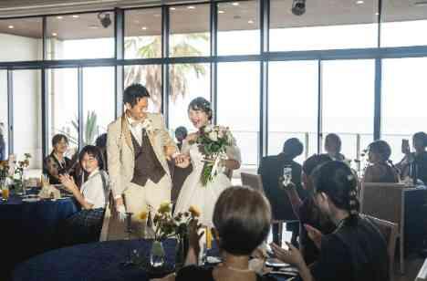 海が見える景色と、空の色がそのまま反映される挙式会場内の内装に魅力を感じました。 披露宴会場からも海が見えていて、その風景をバックに入場できることも初回見学の際に知ることができたので、これが決め手となりました! お料理も初回見学の際に提供していただけるので、 参列者の立場としても会場選びの参考になるかと思いました。