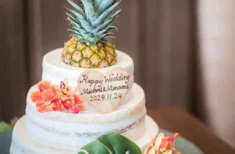 リゾートウエディングに憧れていたため、雰囲気をハワイ風にお願いしました。 ヤシの木が好きなので、ヤシの葉をゲストテーブルに取り入れたいこと、 また私がオレンジ色が好きなので、メインテーブルの色味をお花はオレンジ多めで赤色を差し色で、グリーンも沢山使用して欲しいとお打合せの時からお伝えていました。