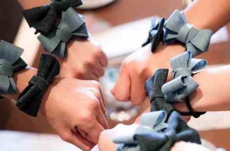 ゲストの方に喜んでもらう為、Photo Boothを受付につくりました。 大好きなデニムをテーマにした為、事前にデニムアイテムを身に着けてもらう様 招待状に付箋を入れ、当日は受付で男性はデニムのバラを、 女性にはデニムのリボンブレスレットを付けてもらい式に参列してもらいました☆ スタッフの方にもデニムを履いてもらい、 おそろいのバラを胸に着けてもらいました!