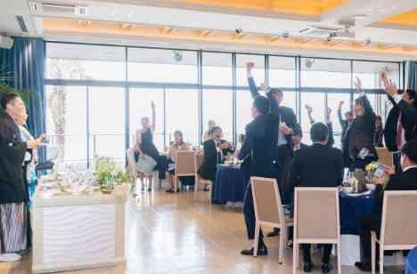 「ポッキーの日」にかけたこだわりは、 お決まりのケーキバイトではなく、ポッキーゲームにした事。 披露宴中に全員が同じタイミングでシェアハピを 共感できる秘密のビンゴ大会をした事。 オールキャストフィナーレで、 スタッフの皆さんとシェアハピダンスを踊った事。 文章では伝えずらいですが、会場全体が盛り上がり、 楽しさをシェアハピできた瞬間でした。