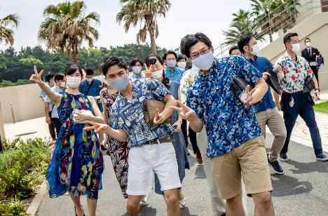 私達のテーマである、【海のかりゆしwedding】を存分に感じていただけるようたくさんの工夫をしました! 席札に貝殻を使ったり、ビーチサンダルを座席の背もたれにかけたり、ドレスコードにかりゆしウェアとリゾートワンピースを追加したり、お料理には沖縄そばをメニューに取り入れました!
