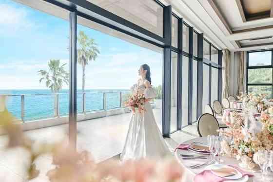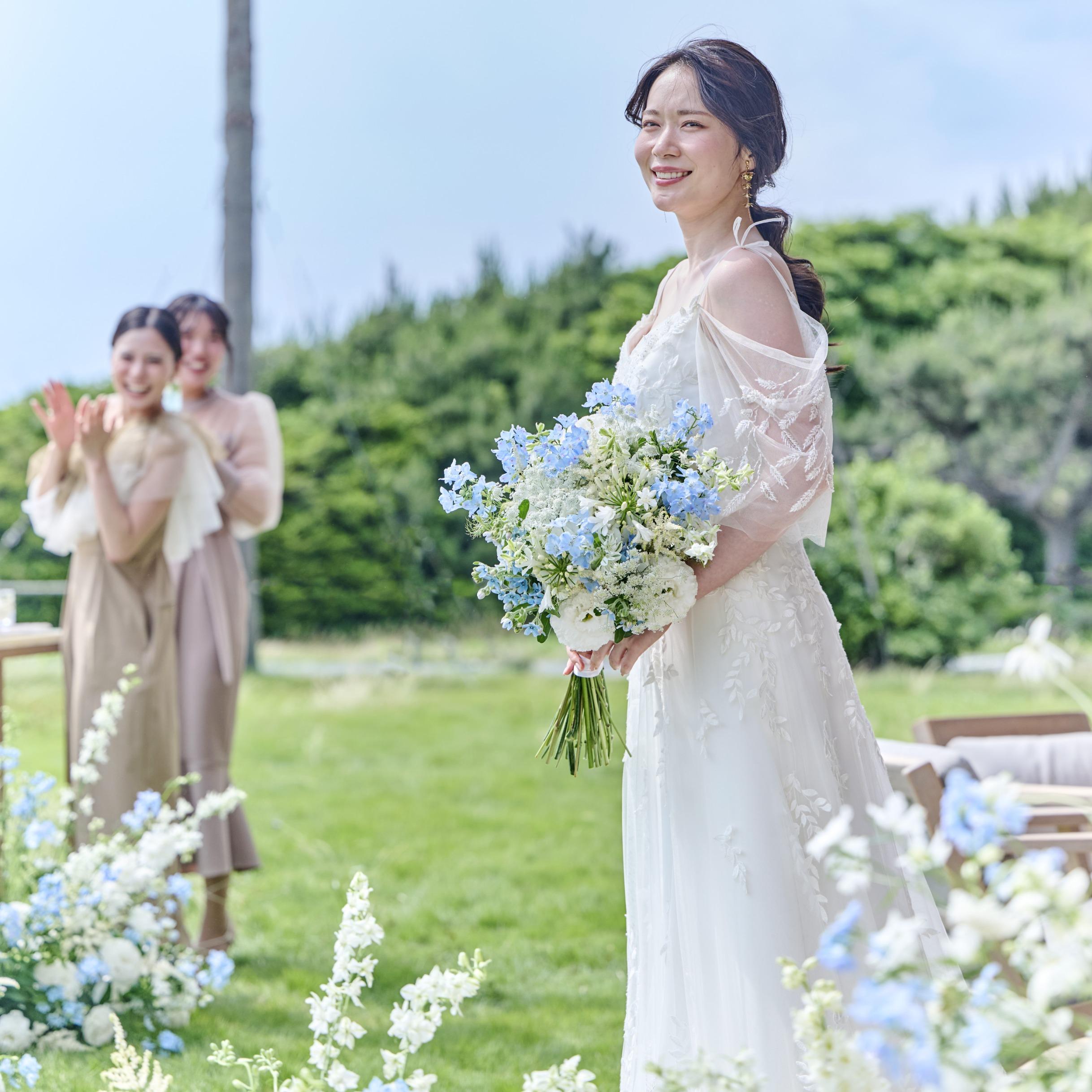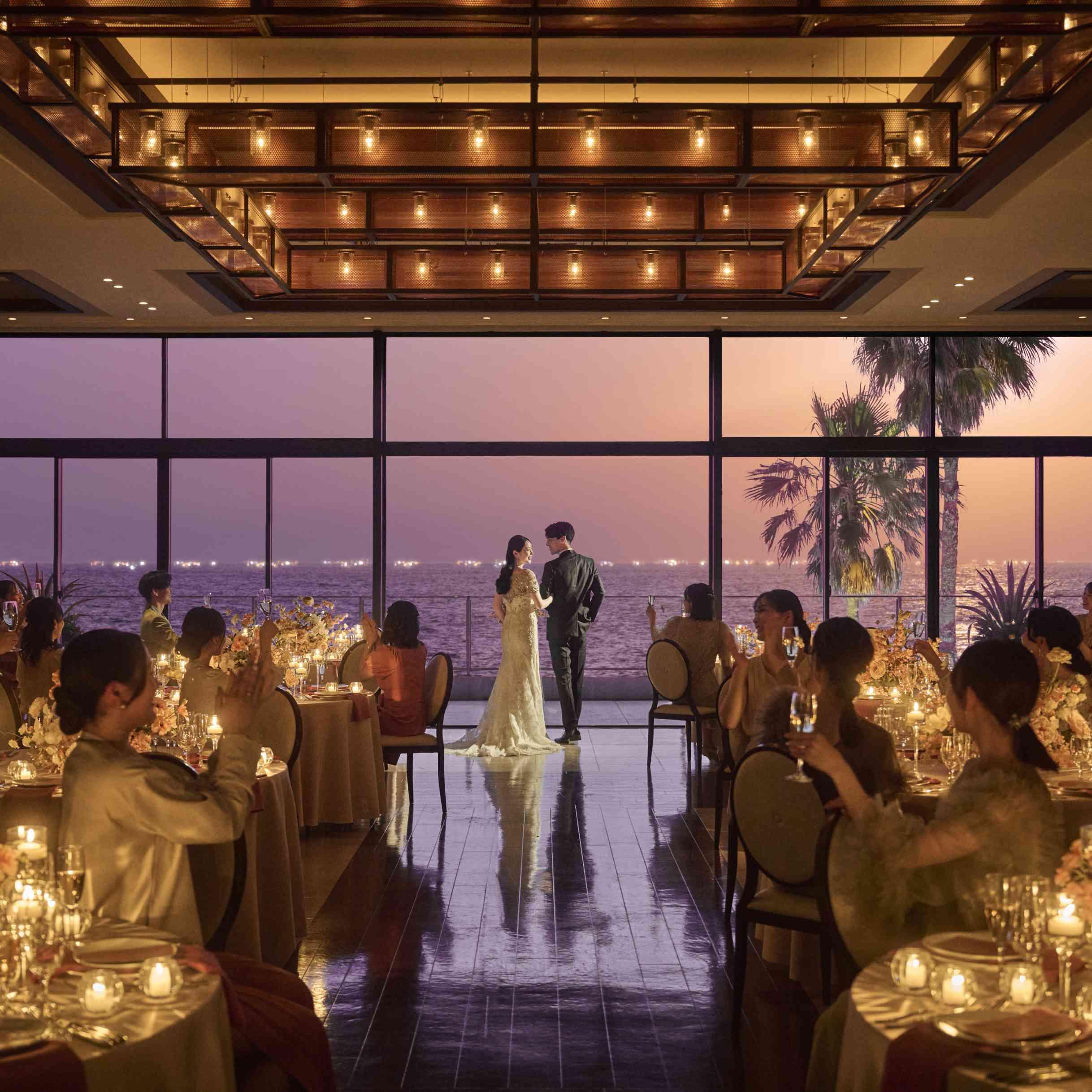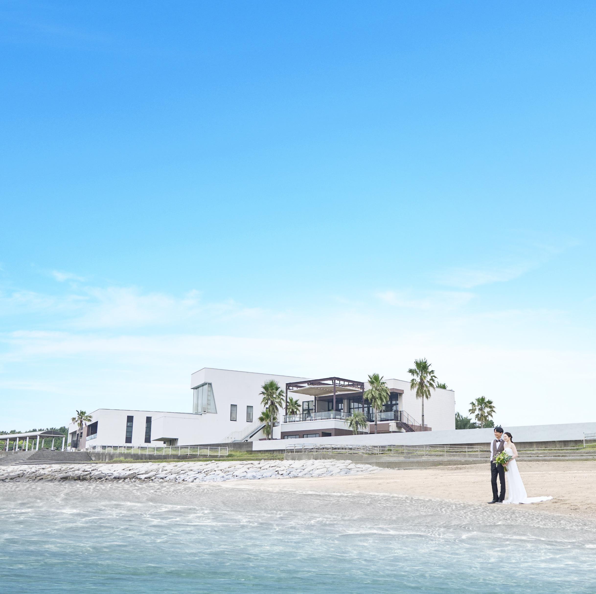扉を開けた瞬間に広がる白く輝く空間と、蒼い海のコントラスト、ホールにふりそそぐ陽光と美しい景色に包まれて、永遠の愛を誓う。いつも眺めていた海、ふたりで訪れていた場所は、この日から特別な場所に変わります