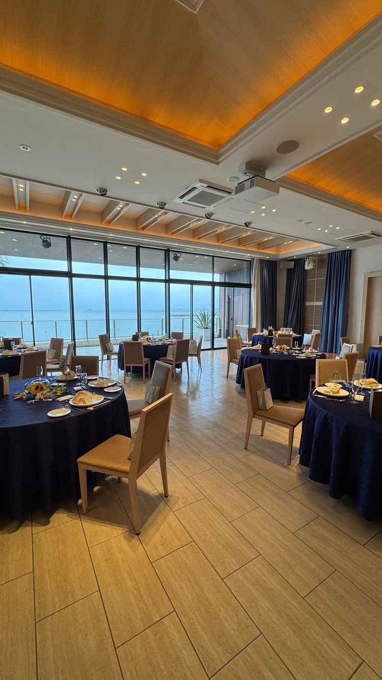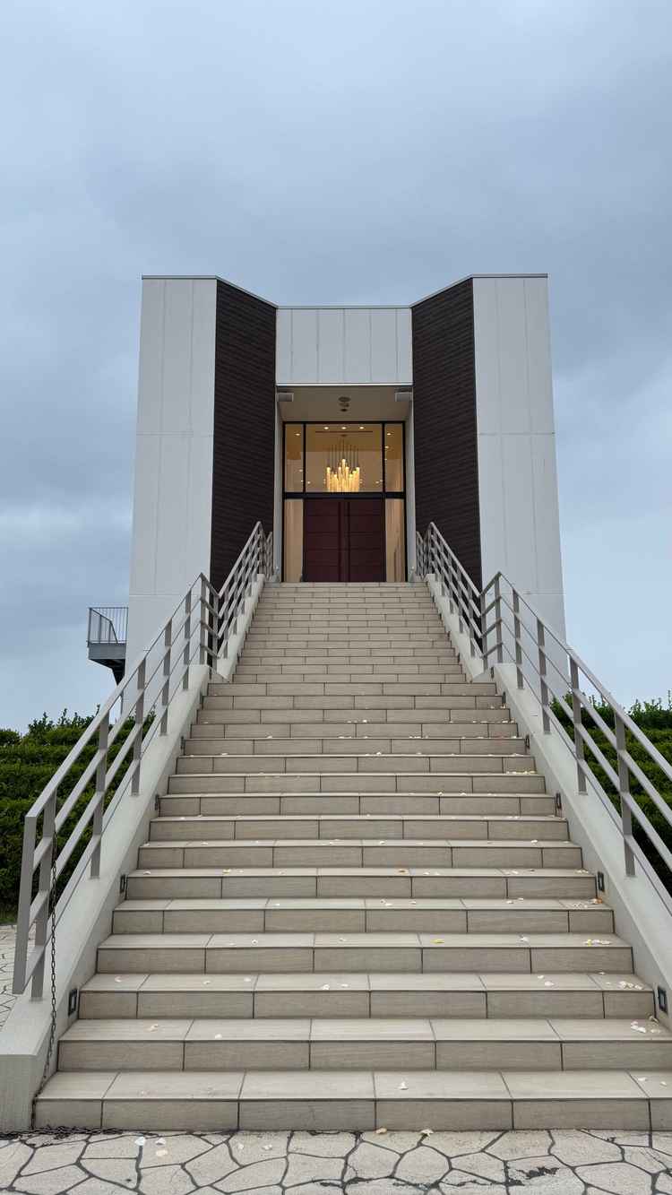 海が見えて式場も新しく綺麗で最高でした。リゾート感のある式場です。チャペル前の階段が映えていました。