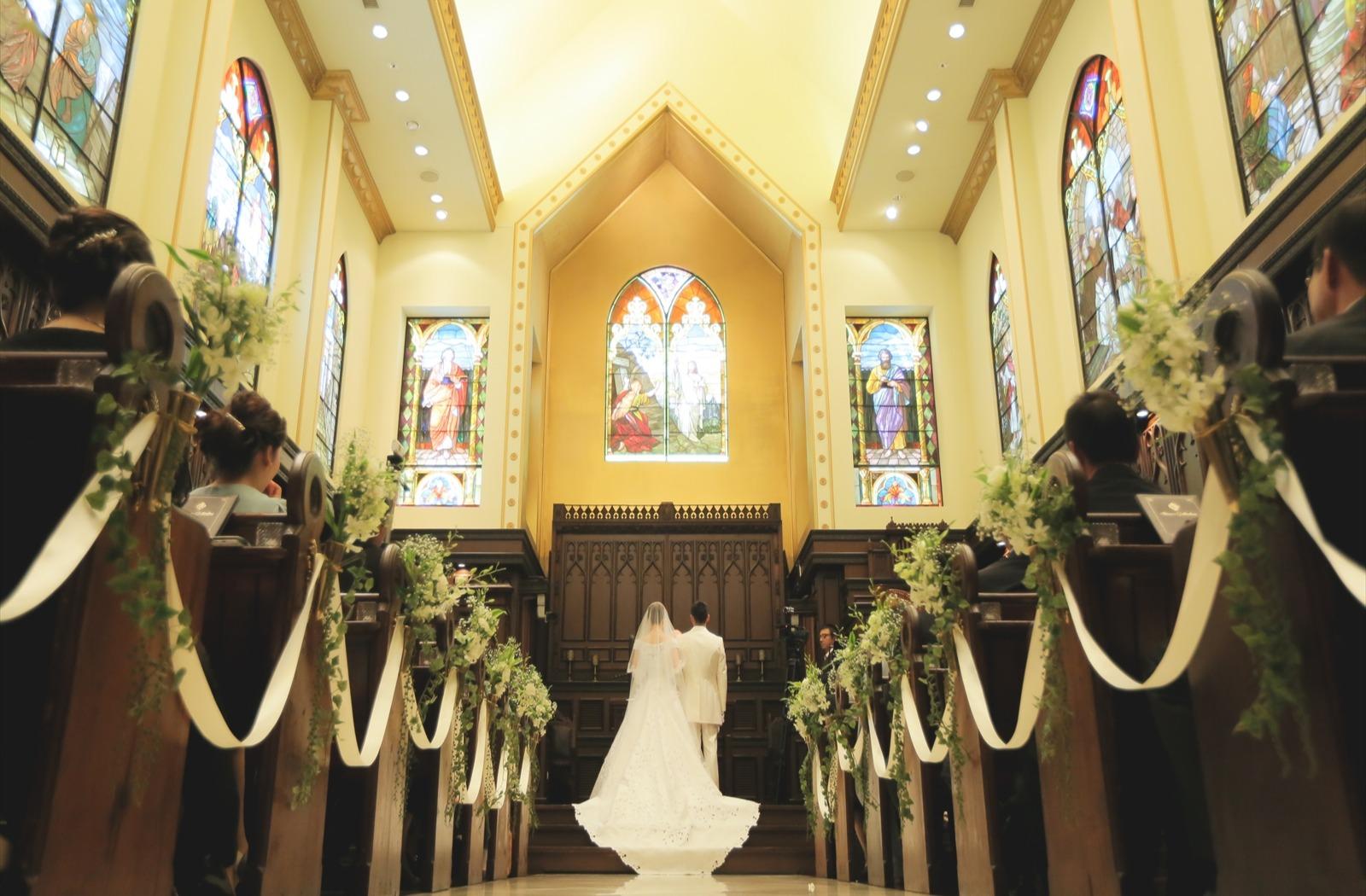 お天気が良かったこともあり、ゲストが撮ってくれた写真(特にステンドグラス!)がすっごくきれいでした!聖歌隊の歌声も感動しました。挙式後は外でフラワーシャワー&ブーケトスのセレモニーを。男性・女性ともにとても盛り上がりました。