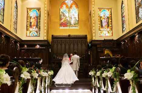ステンドガラス、木造の壁やイスなどが気持ちが引き締まるような雰囲気を演出しそれでいて、とても温かみを感じられる生演奏や聖歌隊の方々の歌声のおかげで、私たちもゲストも心から感動できたので、本当にこのチャペルを選んで良かったと思っています。