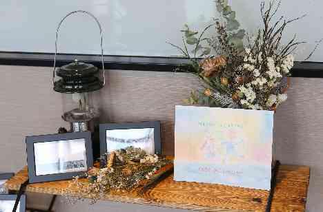 結婚式にもトレンドが多くございます!おしゃれなお二人は今のトレンドを取り入れて自分たちらしさも出せたらとお話いただきました。受付のスペースからお2人の好きなものなどを飾っていただけますのでゲストの挙式までの時間も楽しんでいただける空間になりました♪キャンプが趣味のお2人はグッズも飾っていただき、ゲストもたくさん写真を撮ってくださっていました!