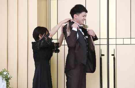 挙式では親御様にも演出で参加いただいたいとお話しいただきました。なので親御様には新郎様に【ジャケットセレモニー】をしていただきました!!ジャケットセレモニーは新郎様の最後のお支度を親御さんに手伝ってもらう演出のことで最近人気の演出です!流行も取り入れつつ、親御様にも感謝をお伝えできるの素敵な演出です♪