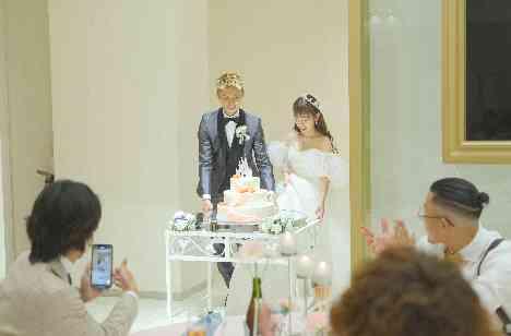披露宴の入場の際は、ケーキを持って入場しました! シンデレラ城のケーキで皆様もディズニーにいるような雰囲気で楽しんでいただいておりました! ファーストバイトのセレモニーでは、新婦様から新郎様には大きなビックスプーンにて行い、会場は大いに盛り上がりました☆ また、カラードレスはマリーちゃんでナフキンの折り方もミッキー・ミニー折りにして皆様へのおもてなしも伝わる素敵な空間でした♪