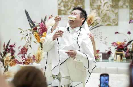 新郎新婦様がウエディングケーキをお互いに食べさせ合う大人気の演出“ファーストバイト”。ひと工夫あるファーストバイトがしたいと考えていたおふたりは…なんと、二人羽織で挑戦することに!!他にはない演出にゲストも大盛り上がり!おふたりだけでなくゲストの皆様も『もう少し右ー!』などとたくさん動画やお写真を撮りながら楽しんでいました!