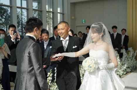 挙式は王道のキリスト挙式を行いました。お父様と一緒にご入場された新婦様。新郎様のもとへ進まれるとき、嬉しそうででもどこか少し寂しそうなお父様…。それでも堂々とした新郎様の姿に、『このふたりなら大丈夫』と強く感じた、そんな表情でした。結婚式ってやっぱり素敵なものだな、家族っていいな、そう感じる素敵なシーンですね。