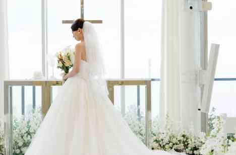 3面のガラス張りで高いところからの見晴らしが良い!雨が降っても屋根の作りで窓が雨に濡れにくいそうです。ガラス張りでも私はブルー系の色が映ってるほうが良いと思い選びました。 天井のシャンデリアは1122本。「良い夫婦」を意味した本数で、近隣のユニバ等からこのシャンデリアを見て結婚式をいつでも思い出せるようなつくりにしているそうです。