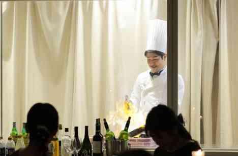 サプライズの【新郎自らフランベ演出】