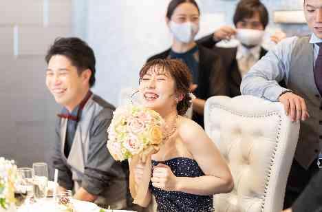 お二人が最も大切にされていたのはゲスト様とのお時間です!「せっかくお越しいただいたゲストとゆっくりと話したり写真撮ったりしたい…!」そんなお二人のご希望もあり、歓談時間を多くとりました☆高砂席にお越しいただいたゲスト様と満面の笑みでお写真を撮り、一人一人とのお時間を大切にして感謝のお気持ちを伝えられていました♪お二人の笑顔がとっても素敵です!!