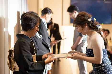 親御様への感謝の気持ちも忘れずにしっかりお伝えされていました。贈呈品は「今まで育ててくれてありがとう」の気持ちを込めて、手作りの子育て感謝状をお渡しされたお二人。子育て感謝状とは生まれてから結婚式までの日数が書いておりますので涙なしには受け取ることができない贈呈品です。お二人の親御様への感謝の気持ちはしっかり届いたと思います☆彡