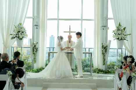 3面ガラス張りの開放的なチャペルで挙げる式はまさに圧巻!!! 自然光が優しく降り注ぎ、明るく幻想的な空間を演出してくれます。 チャペル内には1122本のシャンデリアがあり、「これからもお二人が末永く良い夫婦(1122)でいていただけますように…」と願いが込めてあります…♪ 純白のウエディングドレスがチャペルにもよく映えます★