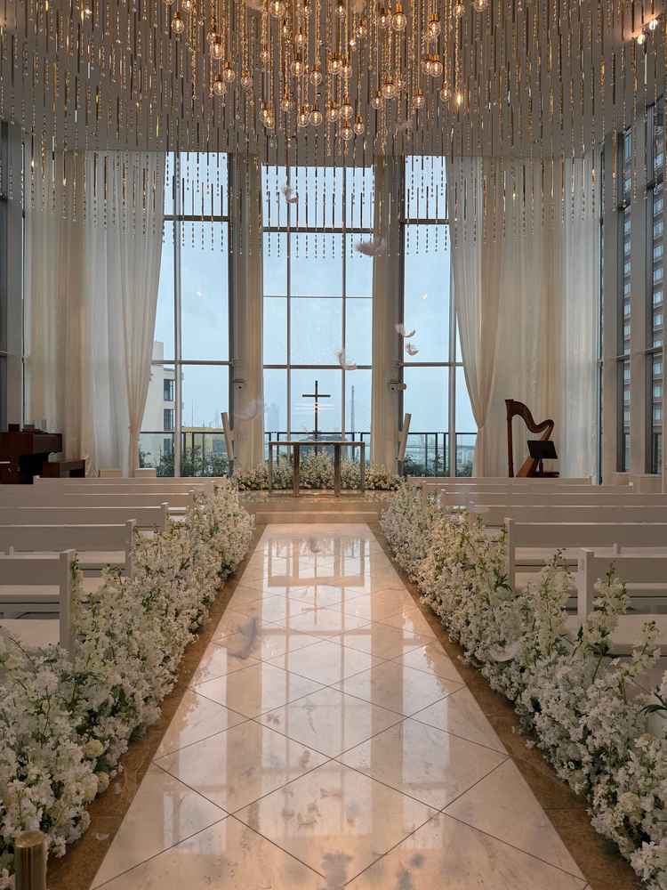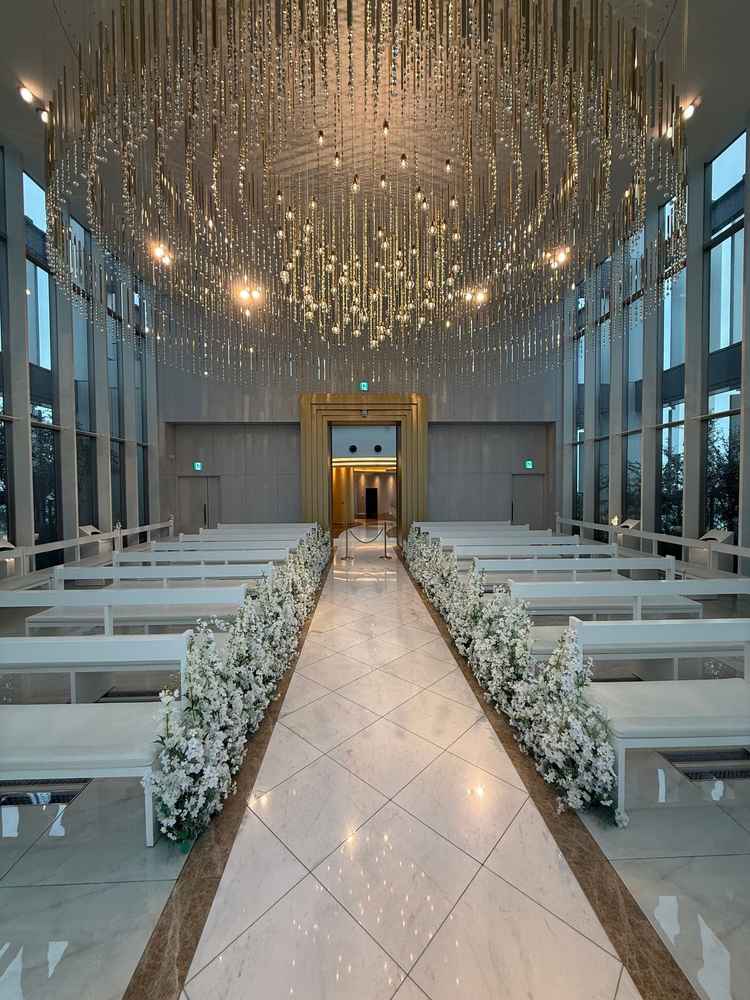 白色を基調として、1122本のシャンデリアで構成されるチャペル会場は自分たちがイメージしていたものと非常にマッチしていた。