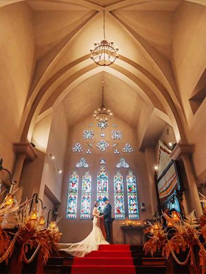 挙式スタイル | 教会式/人前式 ~挙式ではパイプオルガン・ヴァイオリン・聖歌隊2名の生演奏~ 【チャペル】~70名 18世紀にヨーロッパで繁栄したロイヤルステンドグラスの輝くチャペル。 繊細で美しい絵画のようなステンドグラスが、 季節や天候、時間帯によって表情を変え 教会聖堂ならではの美しいシーンを演出します。 王道な教会式でのご結婚式からお二人らしさを演出した唯一無二の人前式まで ご要望に応じて、多様な挙式スタイルをご提案しております。 |