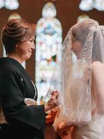 生まれた瞬間から見守ってくれていた大切な親御様。その親御様からのベールダウンで花嫁様のお支度が完成します。 そして今までのたくさんの思い出を一緒に作ってくれたゲスト、 そして何よりも今まで大切に育ててきてくれた親御様へ感謝の気持ちを胸に、一歩一歩ゆっくりと進みます。