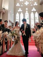 緊張と喜びを胸に進む挙式後、牧師からのオリジナルメッセージとゲストからの祝福を目一杯感じる退場シーン。感謝の気持ちが溢れ出るこのシーンは、自然光が射し込む堂内は温かい退場を演出し、感謝と感動の挙式がお二人とゲストの心にいつまでも残ります。