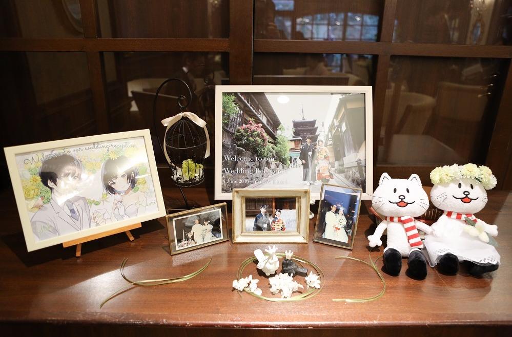 前撮り撮影を和装で行われたおふたり。京都ならではのロケーションで撮影したお写真をご当日のウェルカムボードに♪