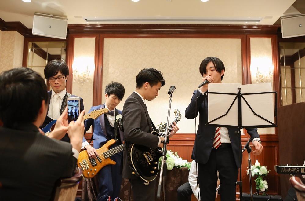 ご新郎様もギターで参加されたゲストの皆様へのライブ演出。パーティがひとつになる素敵な演出♪
