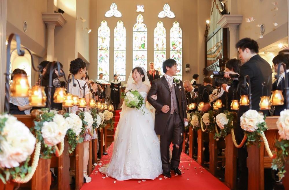 お2人での第一歩を踏み出される、挙式の退場時はゲストからのフラワーシャワーが人気☆ チャペル内での演出の為、天候に左右されないのも人気の秘訣です♪