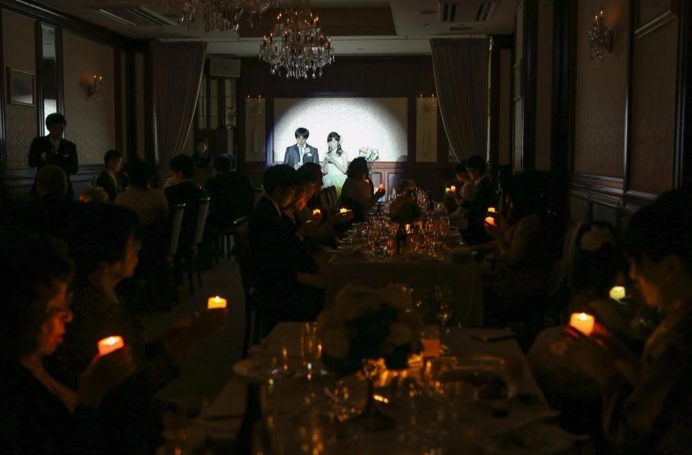 再入場演出で、ゲスト参加型として人気なのが、キャンドルリレー♪ 新郎新婦様から繋いだ幸せの灯りを皆様でリレーしていただきます。 ラストは「願いの封じ込め」で一斉に灯を吹き消します。