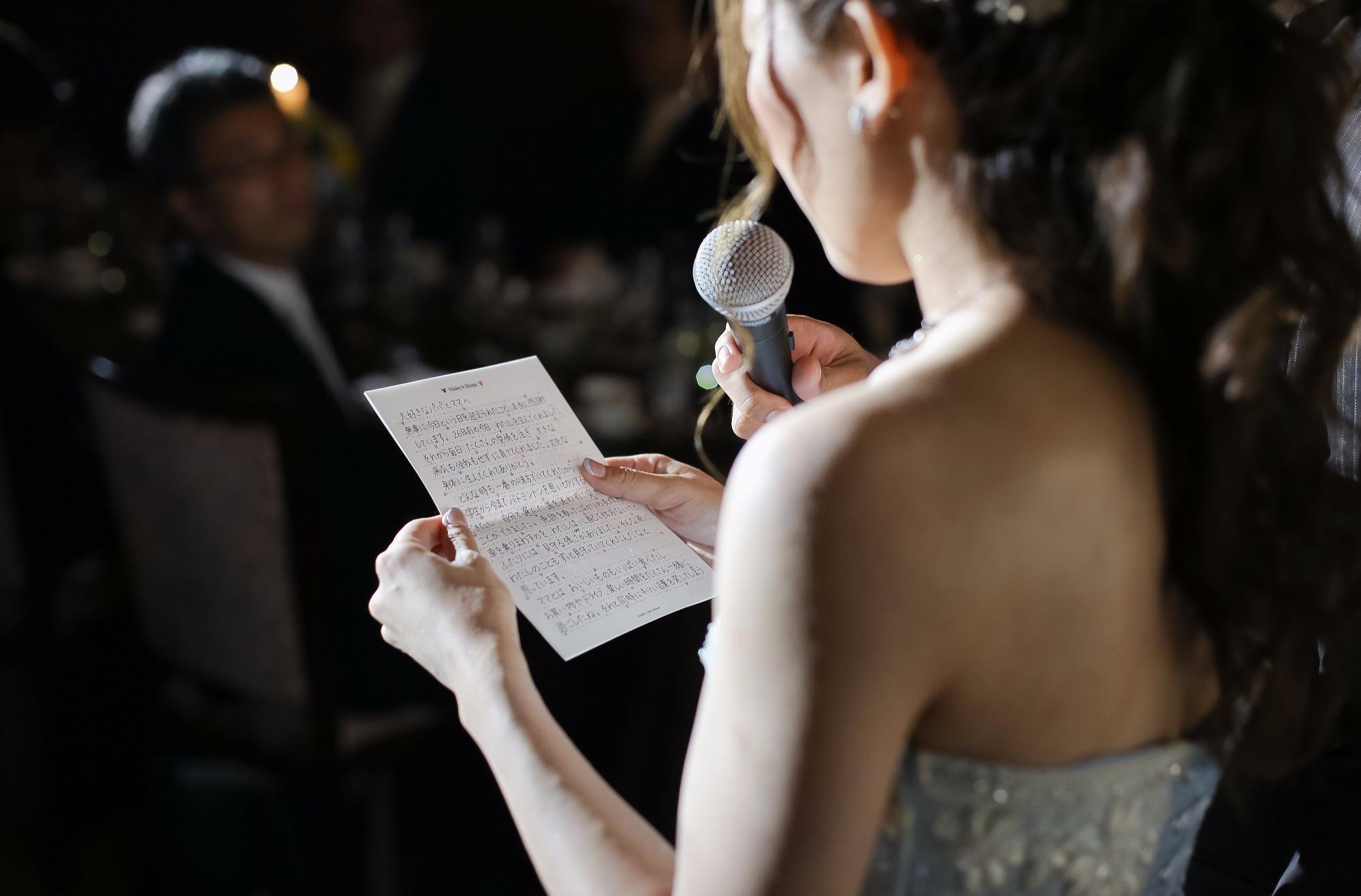 親御様への感謝の気持ちを一心にお手紙を読まれた花嫁様。ゲストの皆様も感動の渦に。。。