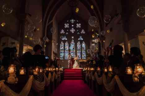 綺麗なステンドグラスのあるチャペルでおひらきをしたいとお話をしていたお2人 ご新郎様はご新婦様へサプライズでランタンバルーン演出をご準備されました ゲスト様にもサプライズのご説明をしていざお2人が入場! とても驚かれているご新婦様と共に カウントダウンをしてランタンに願いを込めながら高くに飛ばしました 輝くステンドグラスとランタンバルーンが幻想的で記憶に残る1日となりました★