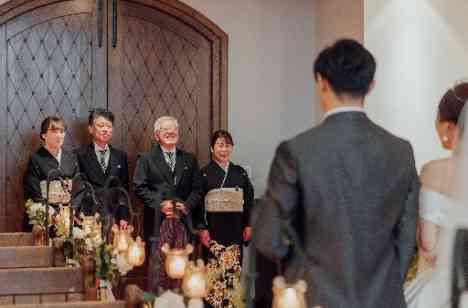 *挙式前のサプライズ演出* 親族控室で上映された生い立ち映像に感謝のメッセージを。 幼い日の思い出と伝えきれなかった「ありがとう」に、親御様の胸が熱くなります。 その想いを胸に迎えたファミリーミートは、いっそう深い感動に包まれる時間に。 チャペルの扉が開き、正装したおふたりと対面。あの日の面影を残しつつ大人へと成長した姿に、言葉にならない愛おしさが込み上げる瞬間となりました。