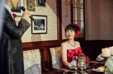 ご友人様にも手伝っていただき この日のために準備しました。 ピアノとコーラスをご友人様に託し ご新郎様はもちろんメインボーカル。 ご新婦様だけではなくゲスト皆様の前でも 堂々と歌い大成功です。