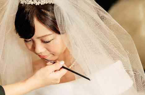 花嫁様がご希望されたメイクをしている瞬間のお写真を撮影いたしました♪ お2人のご希望があればお支度中もお写真やムービーで残すことが可能です! 前撮りのときからヘアメイクのリハーサルも行い本番への準備もばっちりでした☆