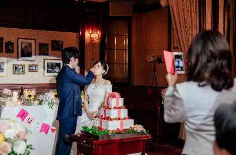 パーティー中の一大イベント、ケーキカット☆ ファーストバイトではご新郎様からの愛情たっぷりのケーキを受け取っておられました! 一瞬のタイミングを逃さずお母様がカメラマンになってたくさんお写真を撮影されておりました♪
