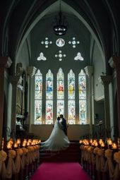 18世紀英国の教会から譲り受けた美しいステンドグラスには、柔らかな自然光が降り注ぎおふたりを包み込みます。天上高10m以上、2階から4階まで吹き抜けの大聖堂で、映画のワンシーンのような感動挙式を