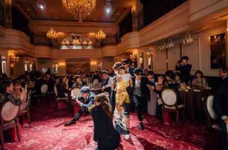 代表的な感動シーンでもあるご中座。 新郎新婦様はそれぞれのご兄弟やご親族様にエスコートしていただき、とても和やかな雰囲気の中、ご中座されました♪ その後はゲスト様にはサプライズで、お二人の愛娘のご中座シーンへ。 新郎様のご友人様らがSP役をしてくださり、お母様とお子様を囲みながらのご退場。 お母様へもSPご登場についてはサプライズだった為、会場全体が優しい笑顔に包まれた瞬間でした☆