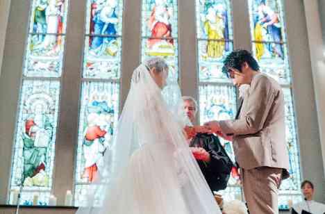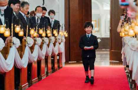 ホームページやSNSを見て、自然光が降り注ぐステンドグラスの大聖堂に魅力に感じたとお話してくださっておりました。 そんな大聖堂で行われたアットホームW。 花嫁様の結びのお仕度と言われるベールダウンでは今まで育ててくれたお母様の手により結びました。 リングボーイの入場では甥っ子さんが大好きな“めざせポケットモンスター”をBGMとし、はにかみながら歩く姿に会場もほっこりした雰囲気で包まれました。