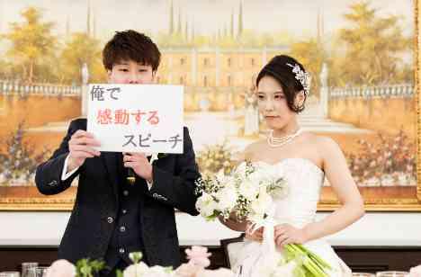 ゲストのお席にはお名前が入ったネームプレートのキーホルダー。来てくれる皆に”何か残るもの”と一つ一つ手作りをされました。Wスピーチで新郎様がカンペとして掲げてくださったのは・・。”俺で感動するスピーチ” ゲストの皆様も少し緊張された新郎様を見てホッコリしながら会場が一気に温かい雰囲気に包まれました。