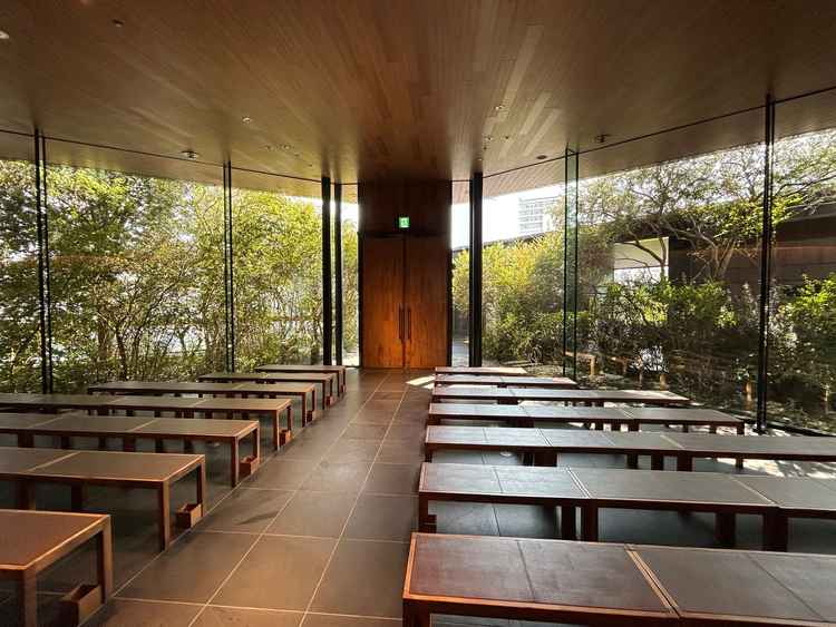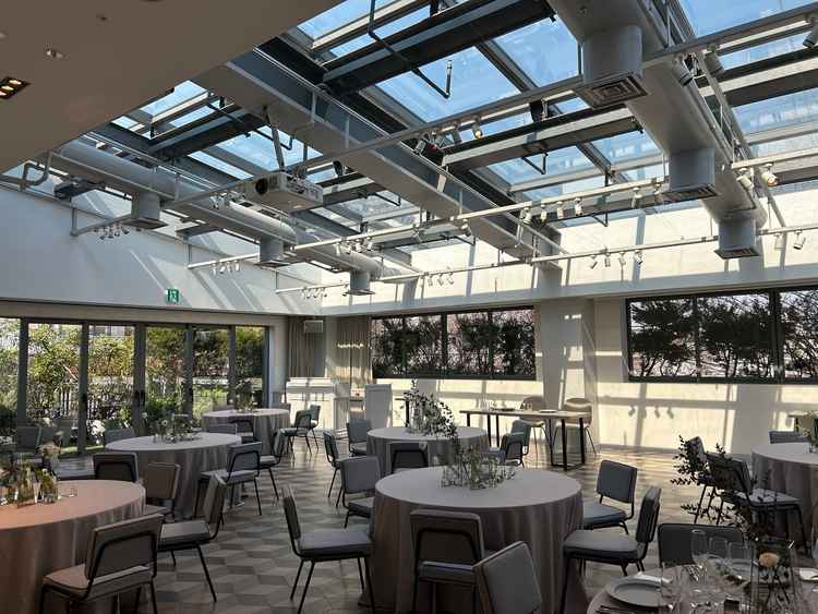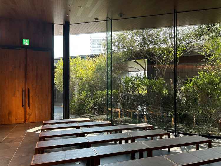 挙式会場が特に良かった。1年を通して緑があり、自然光を最大限に生かす作りで魅力的だった。バリアフリーにも配慮されている。