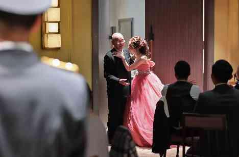 披露宴前半はゲストの皆様との時間を多く取っていたたので写真をたくさん撮影しにきてくれました。 プレゼントリレーでは、ご新婦様のご友人からスピーチをいただき感動の内容で会場内涙を流す方もいました。 また再入場では、おじい様と一緒に入場したいと思いでおじい様と腕を組んでご入場…。メインテーブルの前でご新郎様にエスコートをバトンタッチしていただきました。
