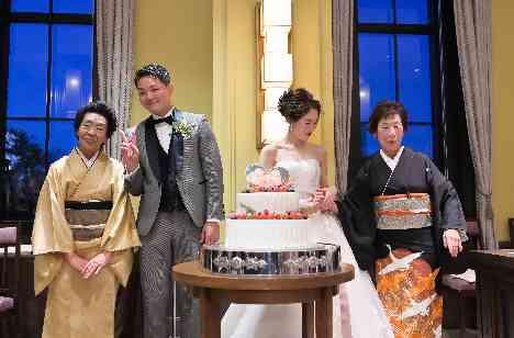 お二人でのケーキバイトのあとは、サプライズで感謝を伝えるサンクスバイトです。 祖母様を呼んで感謝を伝えつつケーキを食べていただきました。 ご親族やご友人の繋がりを大切にされたこだわりの演出になり遠くで見守ることの多いご親族様も一緒に楽しんでいただける一日のスタートとなりました。 この後は、祖母様からもご挨拶をいただきました。