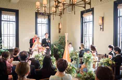 たくさんの緑と自然光を感じるチャペルはアットホームな雰囲気で、ゲスト一人ひとりの表情もしっかりと見ることができました。 新しい一歩を踏み出す日に、これまでわたしたちのことを色々な場面で支え、そして人生に携わってきてくれた大切な人からもらった「おめでとう」は本当に嬉しかったです。 フラワーシャワーの瞬間は特に盛り上がってくれました!