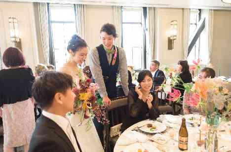 来てくれたゲスト全員と近い距離で話したい!という思いが強くあったのでプランナーさんと相談し、テーブルレイアウトにもこだわりました。披露宴の後半にはチョコレートブッフェを取り入れ、わたしたち自らでゲストをもてなし楽しんでもらう時間を設けるなど、とにかくゲストに喜んで笑顔になってもらえる披露宴にしようねと新郎と話していました。