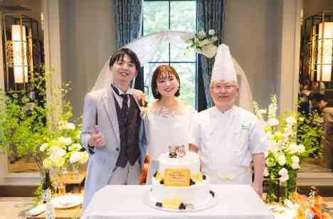 朗らかな雰囲気で始められるように姪っ子ちゃんにお願いして乾杯のスピーチで披露宴がスタート。ご新婦様のお父様が実は現役のパティシエということで冒頭でケーキのライブデコレーションを披露していただきました。お父様にデコレーションしていただいたケーキには同じくお父様に作ってもらったペットのマジパンを飾り付け、完成したオリジナルケーキでファーストバイトを行い、たいへん盛り上がるシーンとなりました。